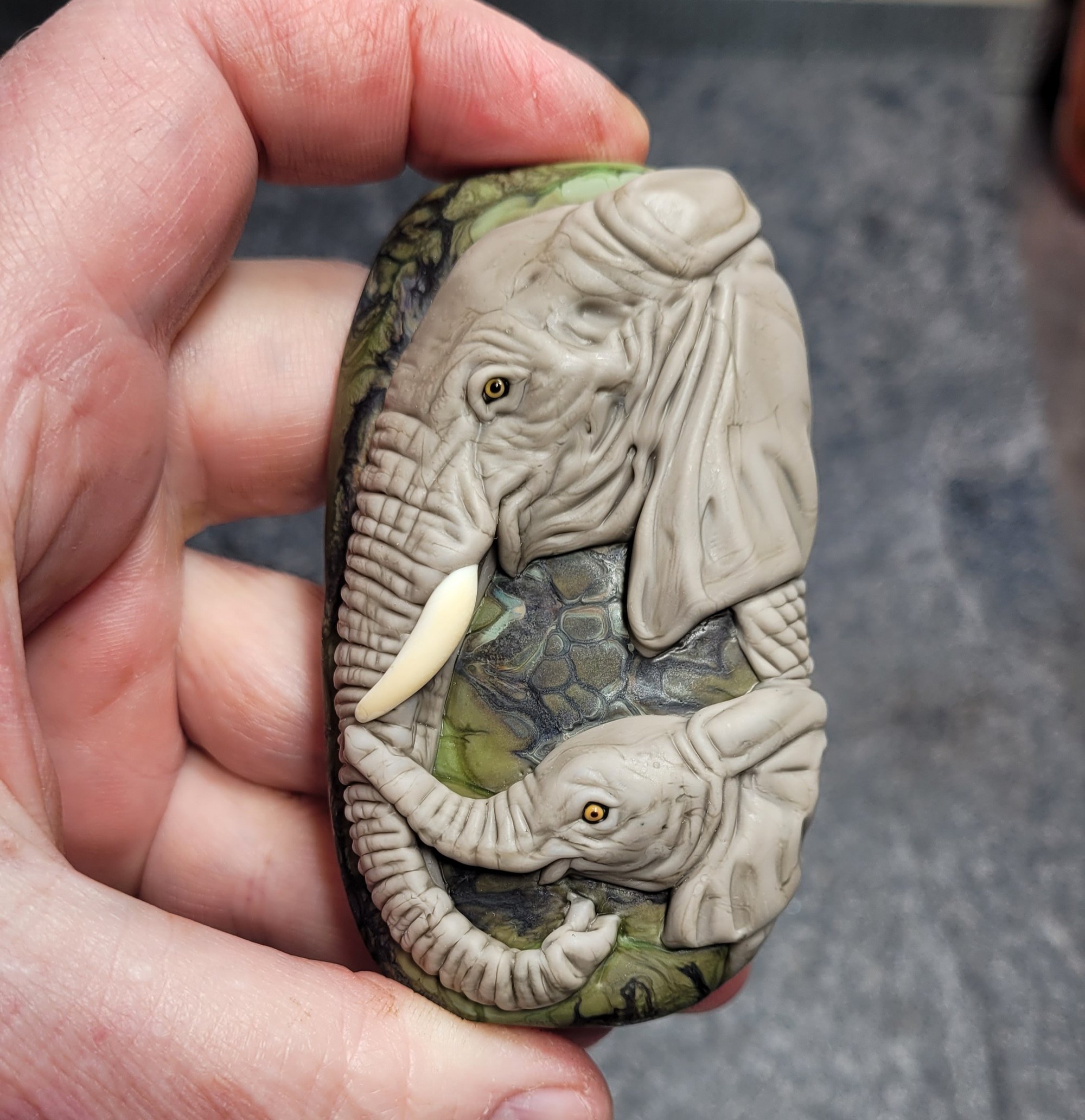XXXL. Mom & Baby African Elephant - Flamework Glass Sculpture Bead