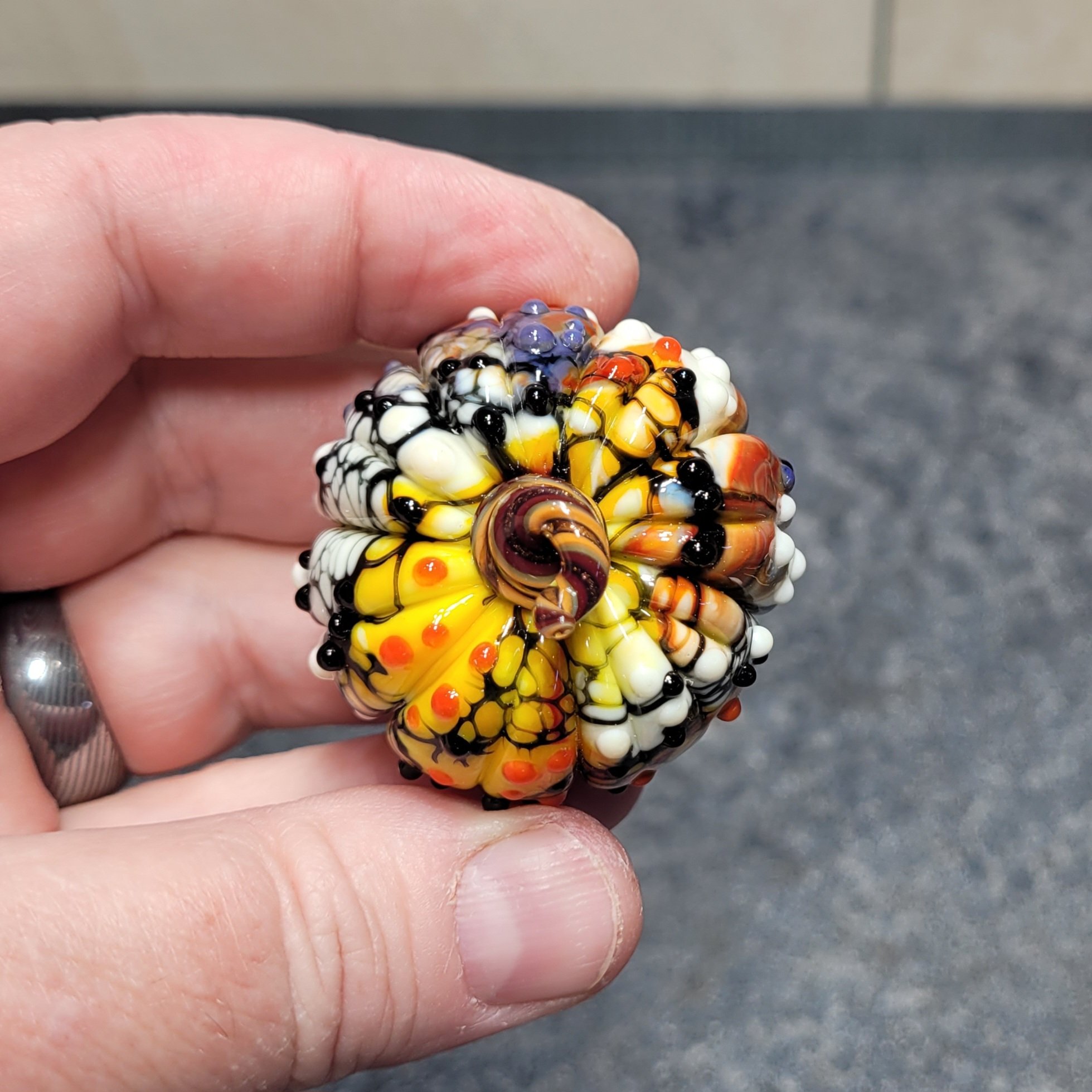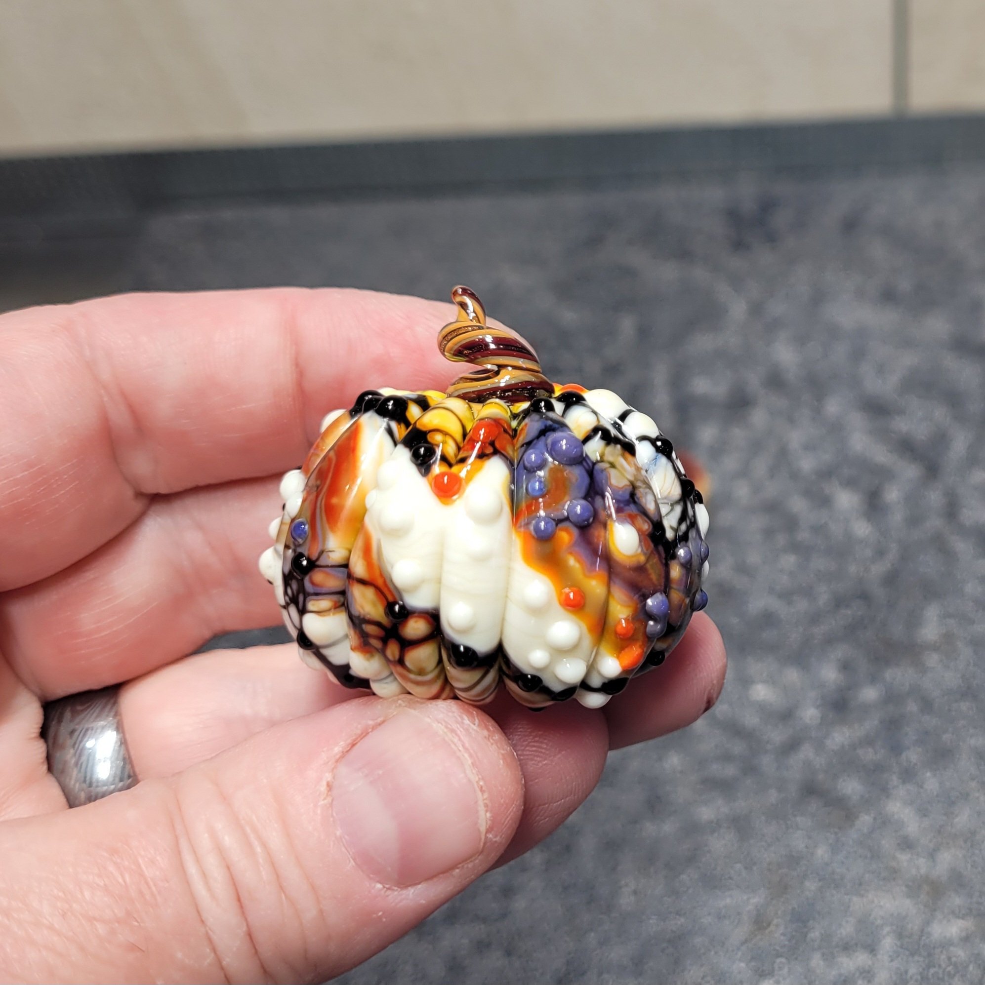 This is a new line of glass sculptures in my "Seasonal" series... this is little Halloween themed pumpkin. This will be an expansive series, so let me know if you are interested in a particular set of colors as a MTO (made to order) :)