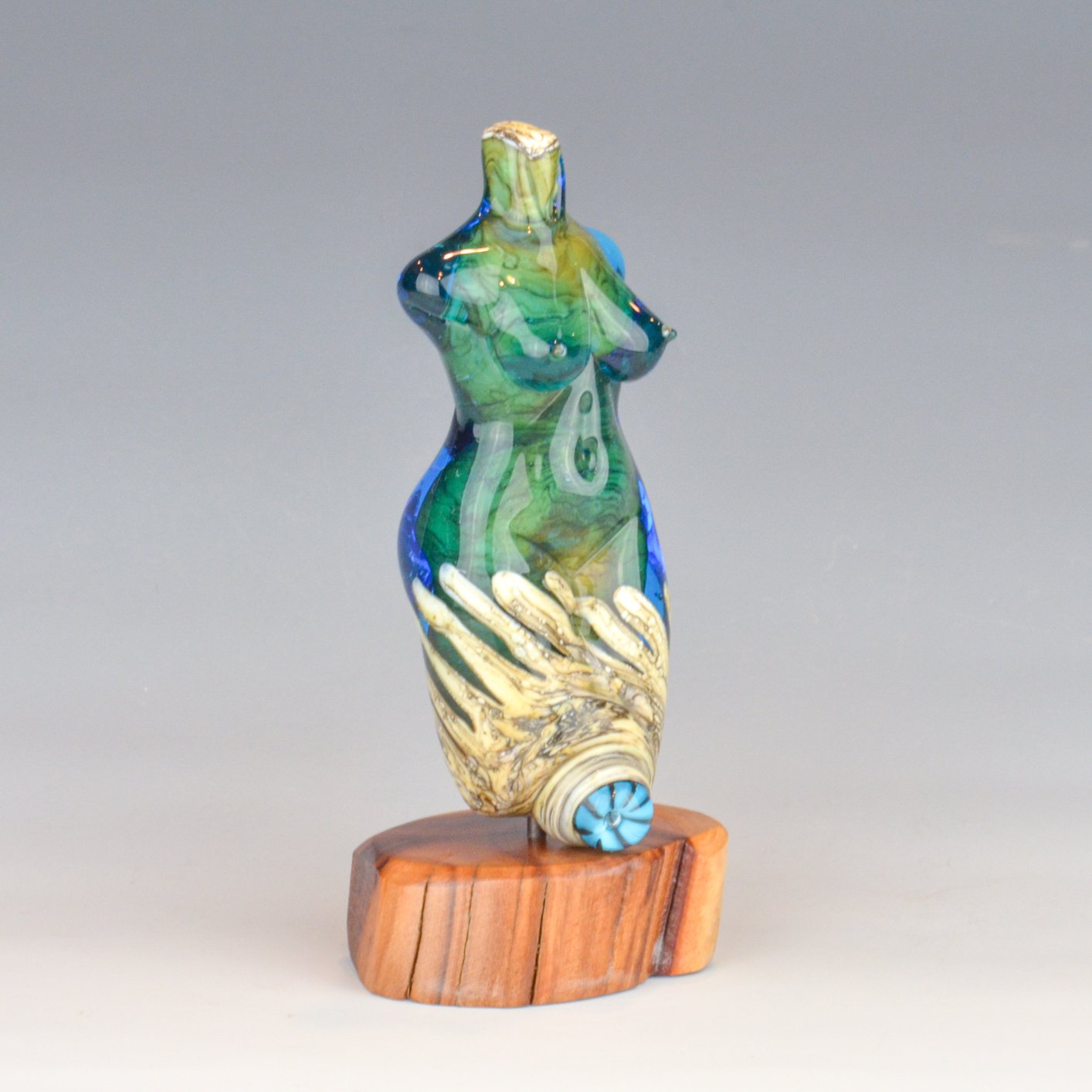 This little lady is an athletic and curvaceous female "goddess" glass sculpture/pendant bead and is one of the most recent editions added to my "Seaside Goddess" series. She is made of a few different colors of glass... the most predominant being a transparent deep blue green :)